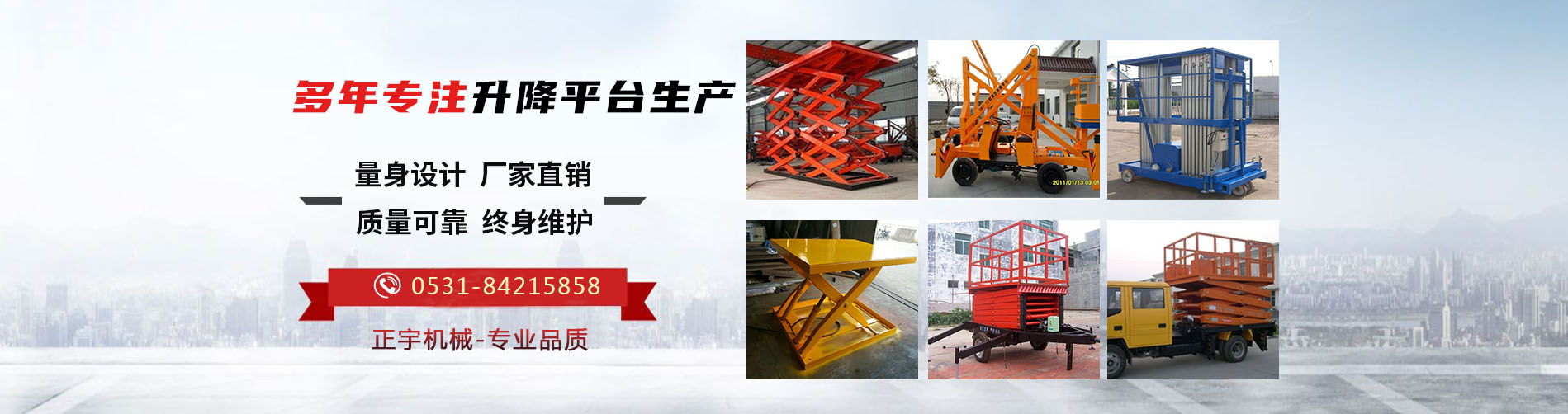 濟(jì)南正宇升降機(jī)械有限公司是一家集設(shè)計、研發(fā)、生產(chǎn)和銷售于一體的制造型企業(yè),生產(chǎn)液壓升降機(jī)械和高空作業(yè)平臺,公司處于素有泉城美稱的山東省濟(jì)南市,坐落于濟(jì)北開發(fā)區(qū)。優(yōu)越的地理位置和便利的交通給公司的發(fā)展帶來了充分的條件。正宇液壓技術(shù)力量厚,工藝流程先進(jìn)合理,檢測手段齊全。目前主要產(chǎn)品有:高空作業(yè)平臺、登車橋、固定升降機(jī)、移動升降機(jī)以及鋁合金升降機(jī)等等。公司產(chǎn)品具有設(shè)計新穎、結(jié)構(gòu)合理、升降平穩(wěn)、載重安全、操作簡單、維護(hù)方便等優(yōu)點(diǎn)。產(chǎn)品廣泛應(yīng)用于各個行業(yè),如工礦企業(yè)、生產(chǎn)流水線、鐵路、機(jī)場、車站碼頭、貨物裝卸升舉、廠房工地、倉儲物流、高空設(shè)備安裝等場合。公司以誠信、創(chuàng)新、穩(wěn)健為宗旨,以品質(zhì)、完善服務(wù)的理念,迎接市場的挑戰(zhàn)。期待您的咨詢!